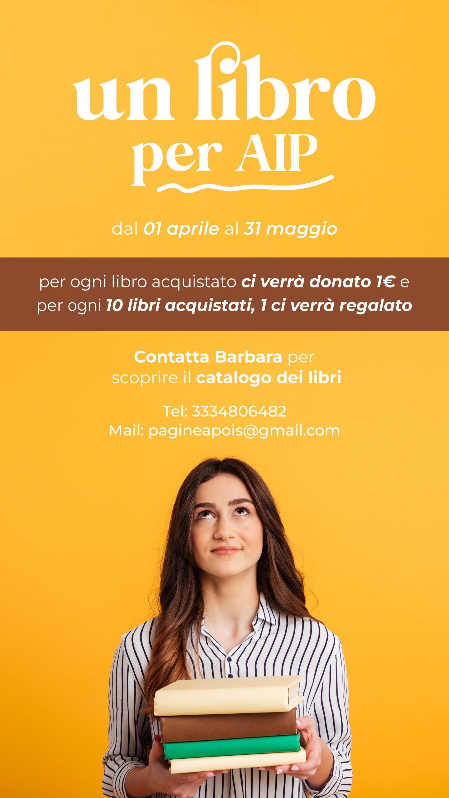 Dal 1° aprile al 31 maggio prende vita “Un libro per AIP”, un’iniziativa solidale nata grazie all’impegno di Barbara Fiocca, socia AIP, che ha deciso di trasformare la sua passione per i libri in un’opportunità concreta di supporto all’Associazione.